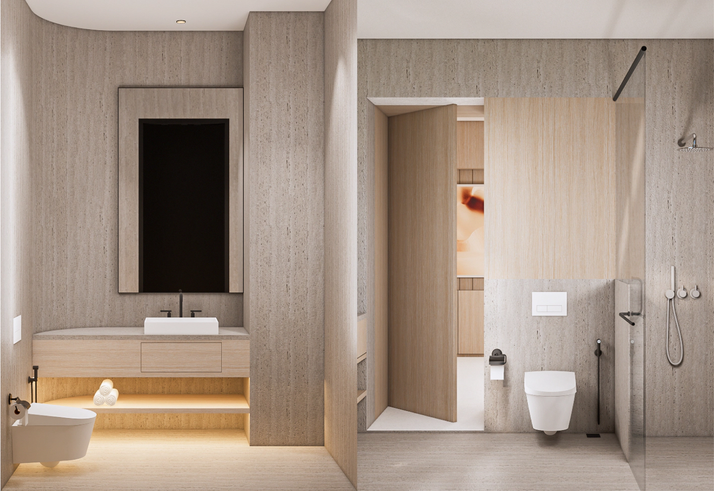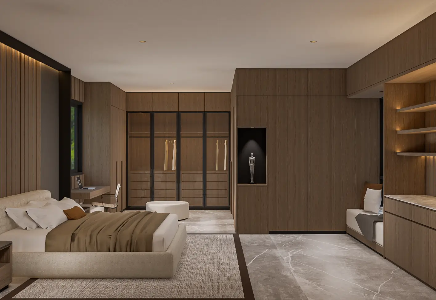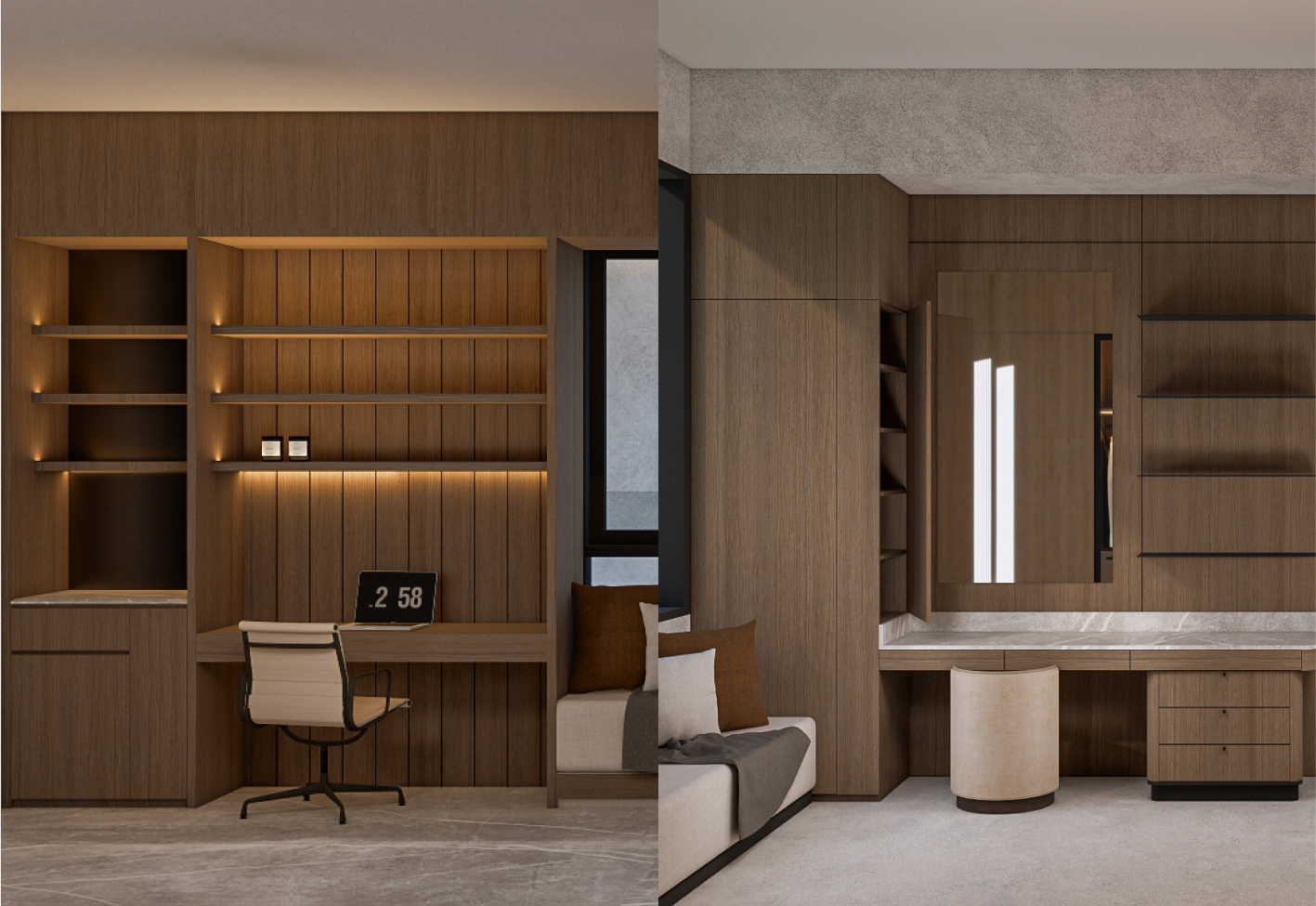 B+W Residences embodies a modern contemporary approach with a naturally warm ambiance. The design highlights the use of wood materials, indirect lighting, and thoughtfully arranged spaces that are both multifunctional and visually pleasing.