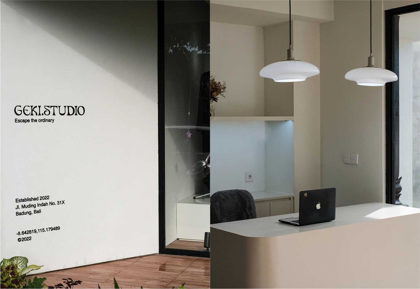 Geki Studio highlights an elegant, minimalist aesthetic infused with refreshing tropical vibes. Wrapped in a clean and warm white palette, the space feels airy, modern, and visually striking.