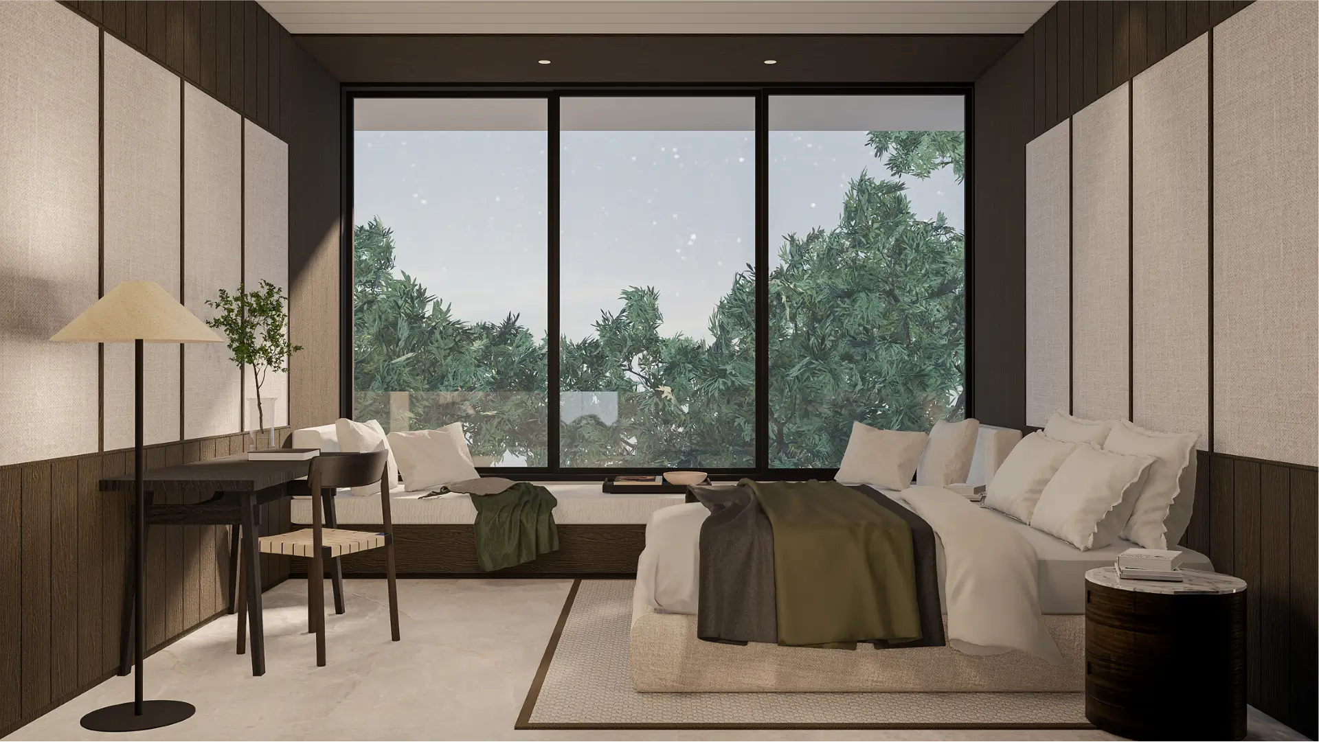 M Villa captures the perfect blend of modern minimalism and calming tropical vibes. Every detail was meticulously arranged to create a space that’s both elegant and effortlessly relaxed.